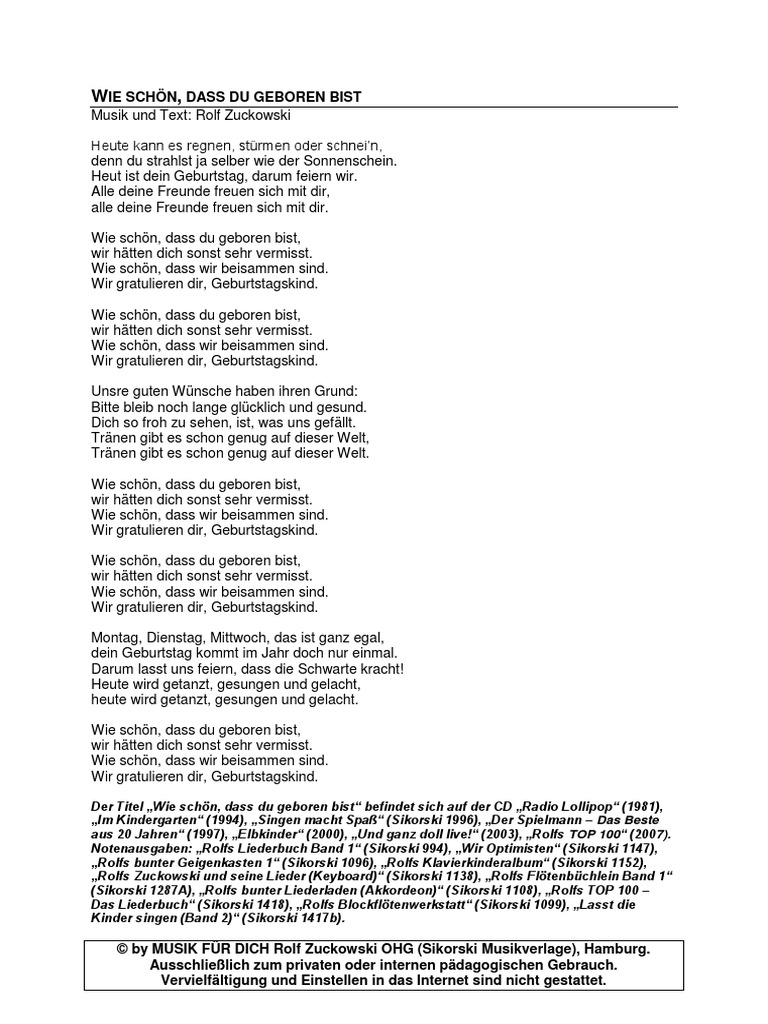 Wie Schon Dass Du Geboren Bist Musikhaus Hieber Lindberg from cdn.nimq.de Heute kann es regnen, stürmen oder schneien, denn du strahlst ja selber wie der sonnenschein. Heute kann es regnen, stürmen oder schnein, denn du strahlst ja selber wie der sonnenschein. Alle deine freunde freuen sich mit dir.