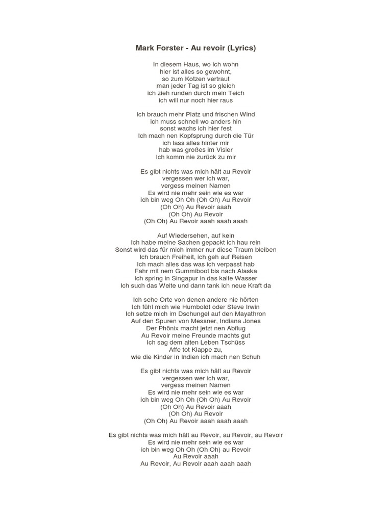 Liedtext Mark Forster. Hier ein schönes lied von mark forster mit liedtext.ich hoffe, dass es euch gefällt :). Mark forster hat noch keinen verwalter.