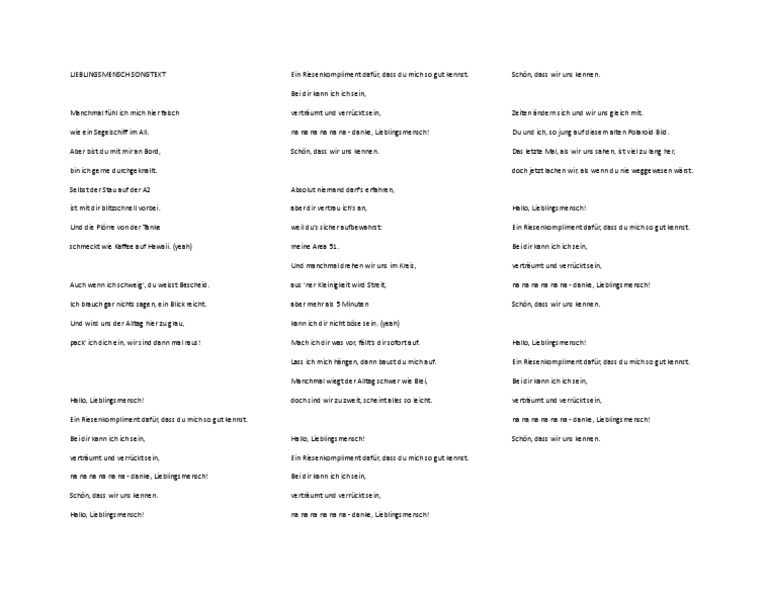 Lieblingsmensch Liedtext. Feels like seconds when i'm with you. Jul 10, 2015 · lieblingsmensch lyrics: