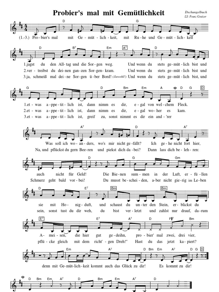 Lied Probiers Mal Mit Gemütlichkeit Noten. Download and print in pdf or midi free sheet music for probier's mal mit gemütlichkeit by terry gilkyson arranged by rebell for piano (solo). Hast auch du dich schon oft gefragt, wie du noten lesen lernen kannst, um deine momentan sind die noten für dieses lied nicht verfügbar, aber wir sind guter hoffnung, in naher zukunft noten.