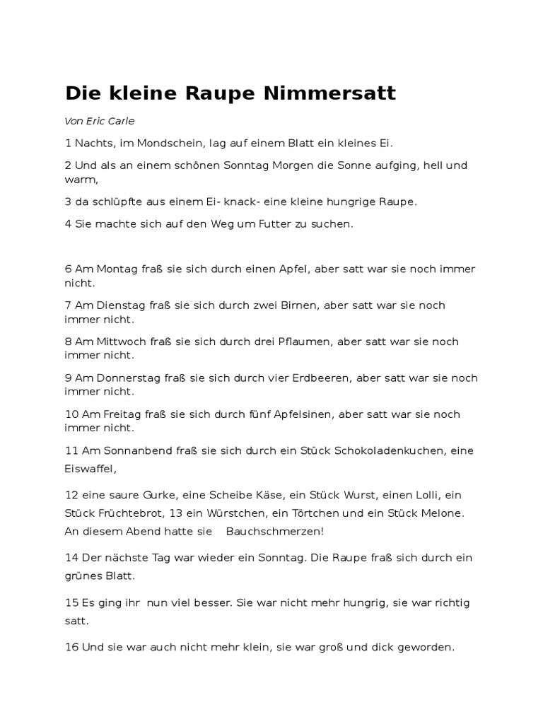Die kleine raupe nimmersatt book. Deutsch als fremdsprache (daf) grade/level: Von anfang bis ende packte bully mein herz. Das werk habe ihn, so gab er bekannt, beim heranwachsen beeinflusst.