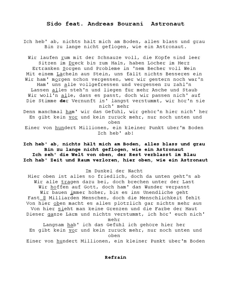 Liedtext Von Astronaut. Unter mir deine kleine welt fernab der heimat endlos weit egal wo du bist, egal wo du lebst. Astronaut + russisch übersetzung (version #2) | sido.