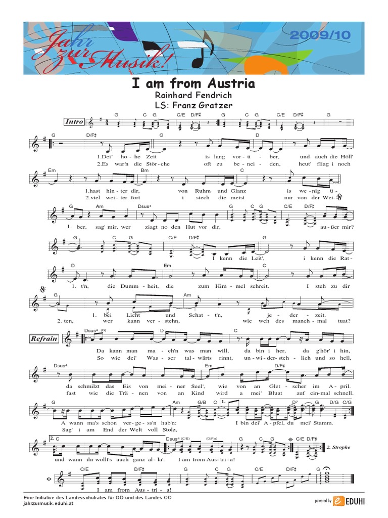 Liedtext I Am From Austria. I am from austria deutsche übersetzung ». strophe 1 dei' hohe zeit ist long vorüber und a die höh' host hinter dir von ruhm und glonz ist wenig über sog' ma, wer ziagt no den huat vua dir?