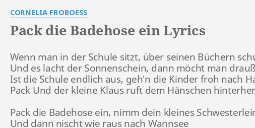Pack Die Badehose Ein Lyrics By Cornelia Froboess Wenn Man In Der