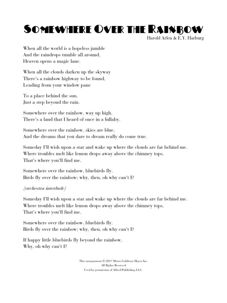 Somewhere Over The Rainbow Lyrics And Chords Over The Rainbow Lyrics